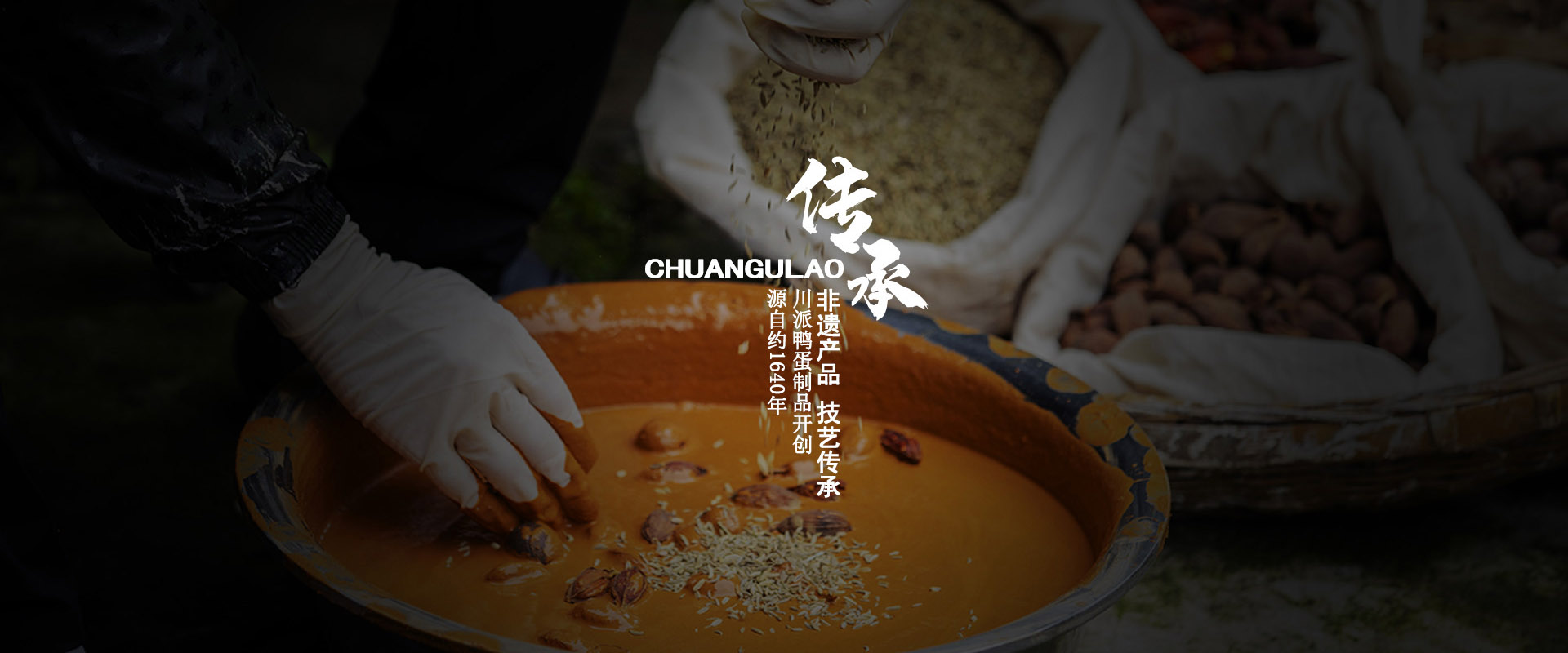 “川古佬”鴨蛋工藝法起源于明代,初為川西民間自制咸蛋,皮蛋,粽子等手工制品之法,并在明末由蒲江古氏佬者潛心調制數年,獨創了以古井鹽水和秘制天然輔料相結合的新工藝制法,從而極大的改善了鴨蛋制品的口感和食用價值。